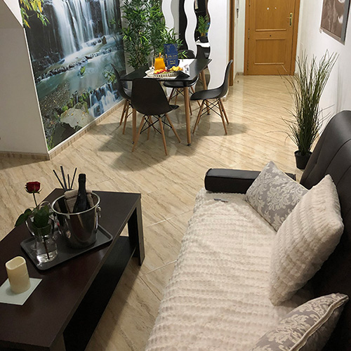 Nuestro establecimiento se caracteriza por la relación calidad-precio, nuestro excelente servicio y la excepcional ubicación de los apartamentos, situados en la Plaza de la Nogalera en Torremolinos a tan solo 10 minutos caminando llegas a la playa del Bajondillo y a 20 metros de la Calle San Miguel, lugar de tapas y ocio. La estación de tren de Torremolinos se encuentra en la misma plaza. Rodeado de todo tipo de comercios: bares de tapas, pastelerías, tiendas de souvenirs, cafeterías, bodegas, tiendas de moda, heladerías, zona de ocio y fiesta. A escasos metros se encuentran las paradas de tren, autobús y taxi. Nuestros apartamentos están higienizados con productos recomendados por la Sociedad Española de Neumología Pediátrica, Dyson.
